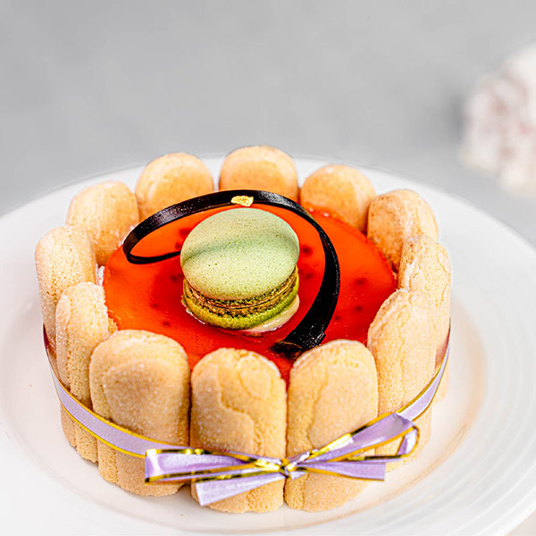 外層:覆盆莓凍、手指餅乾、抹茶金棗馬卡龍、巧克力