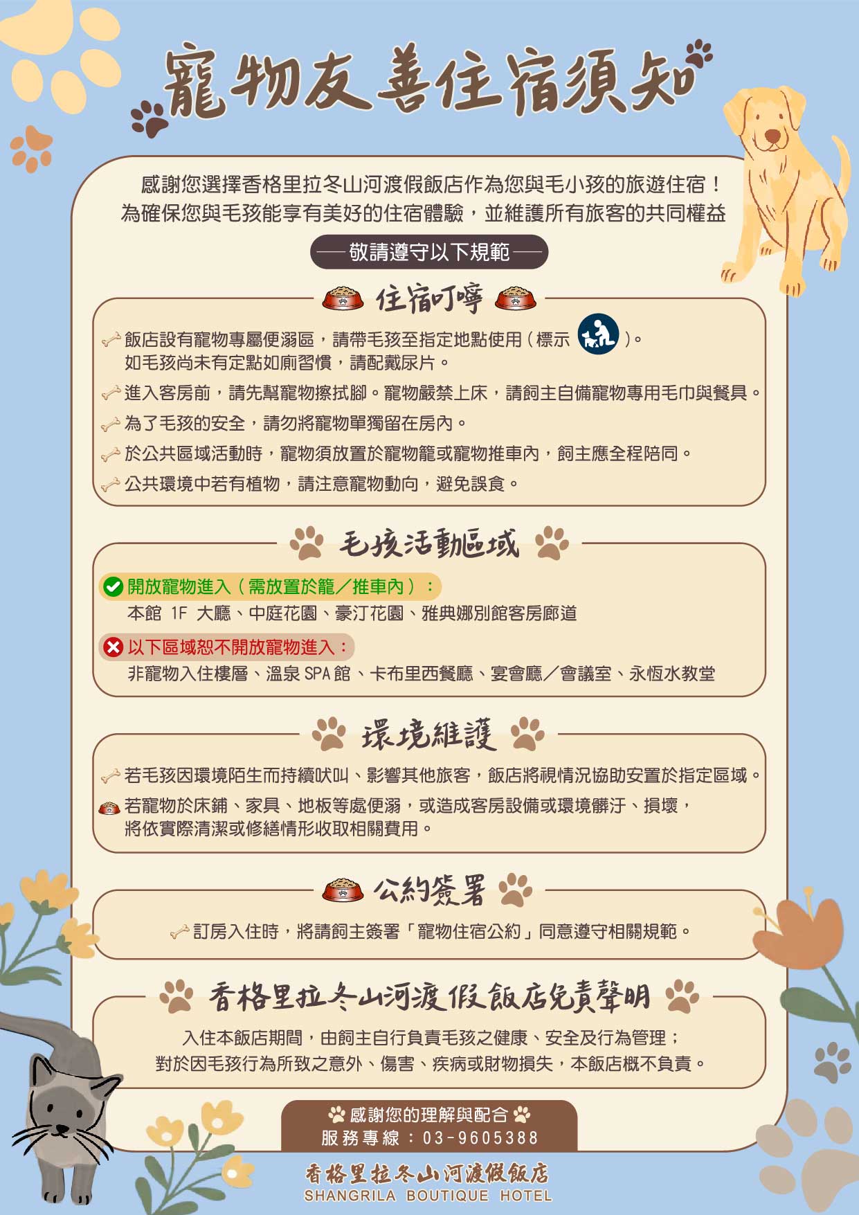● 入住時請飼主 (即住宿顧客) 詳讀簽名「 寵物住宿公約 」。